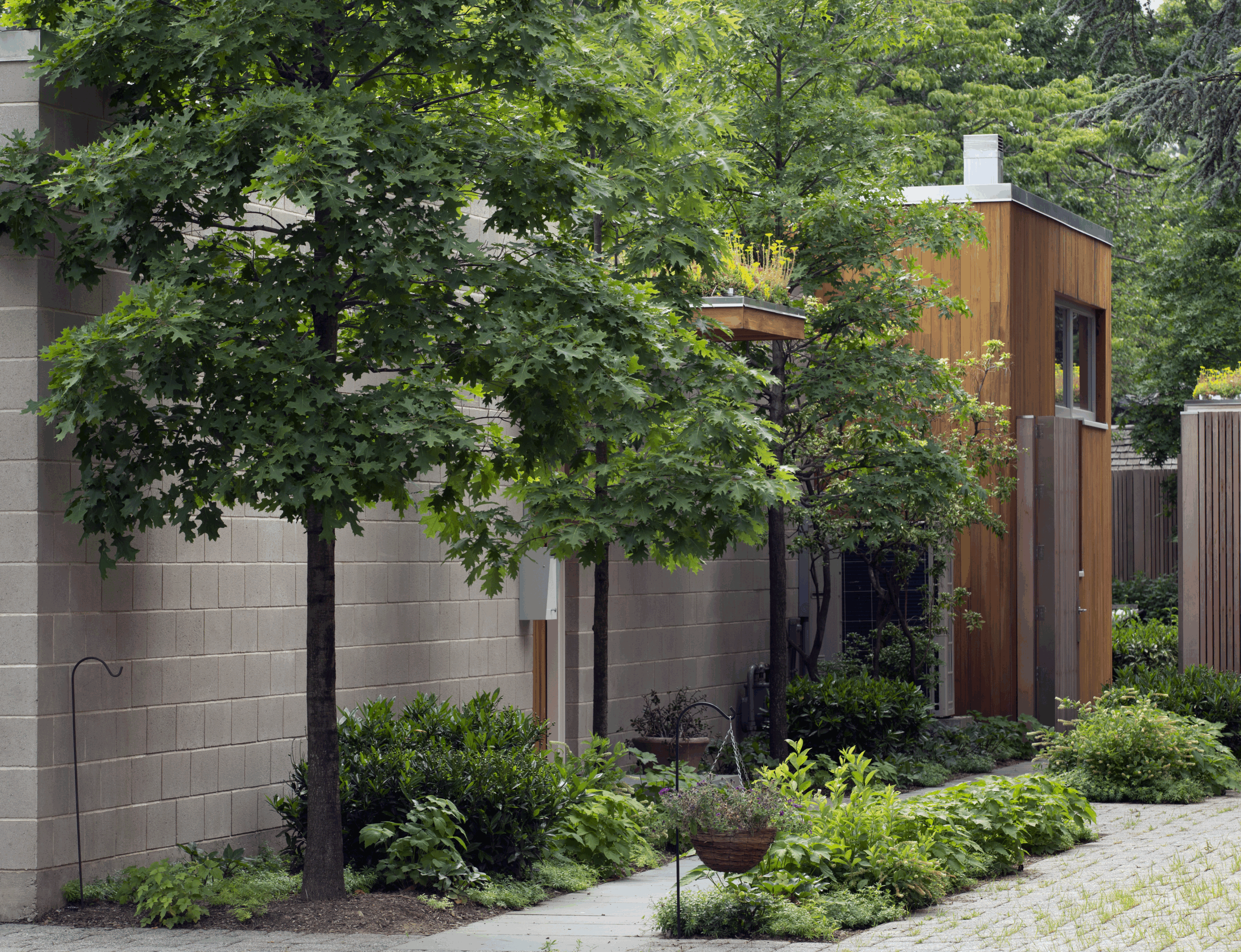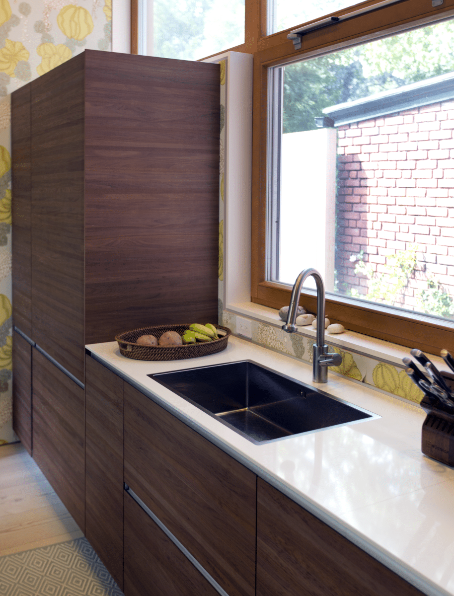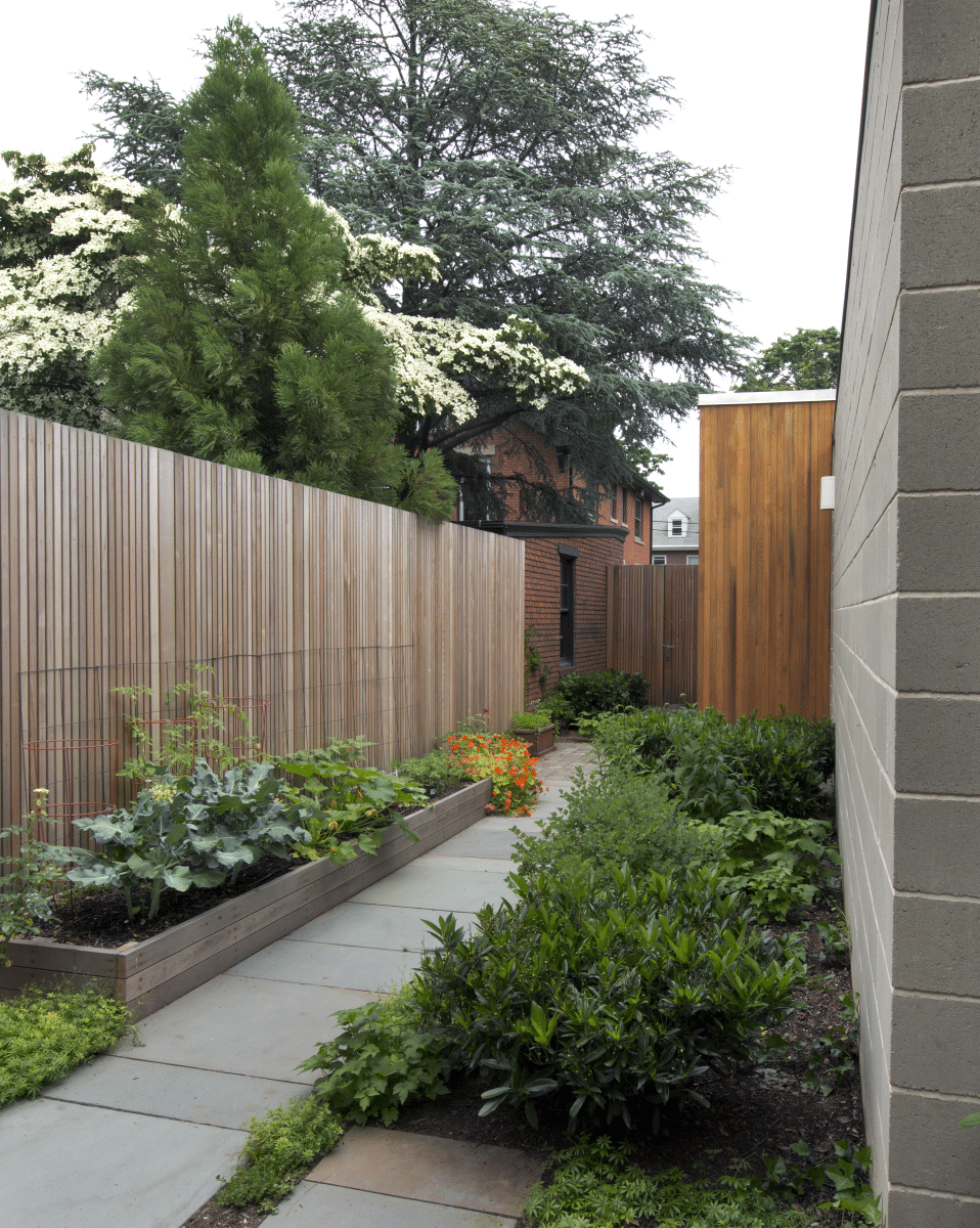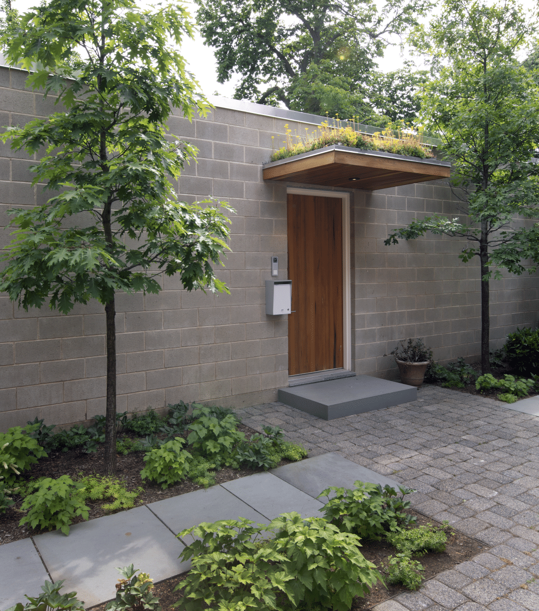 Particular aspects of the design solution included wrapping the CMU enclosure with 4″ of high-R polyisocyanurate insulation with a facing of 4″ CMU to match both the original surface, and the 8″ block module. The insulation was continued below grade to the footing – and a concrete grade beam was poured with sawn wood forming to replicate the visual presence of the original slab-edge. The enclosure enhancement included a tested air tightness at the Passive House standard – such that a single multi-point, air-sourced heat pump can satisfy the load.