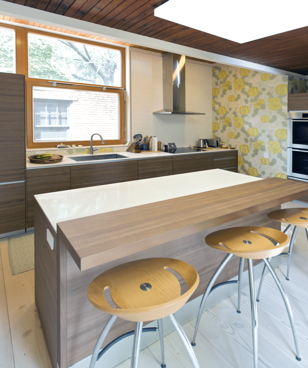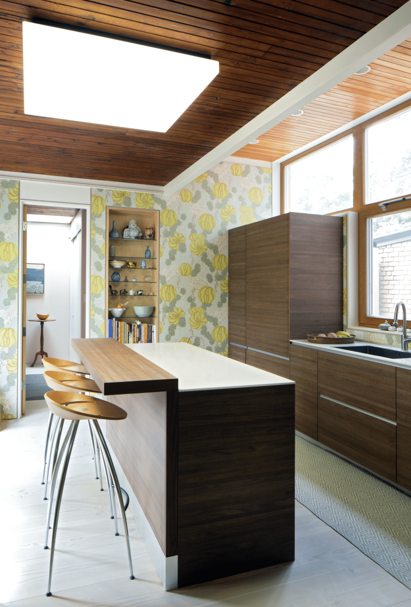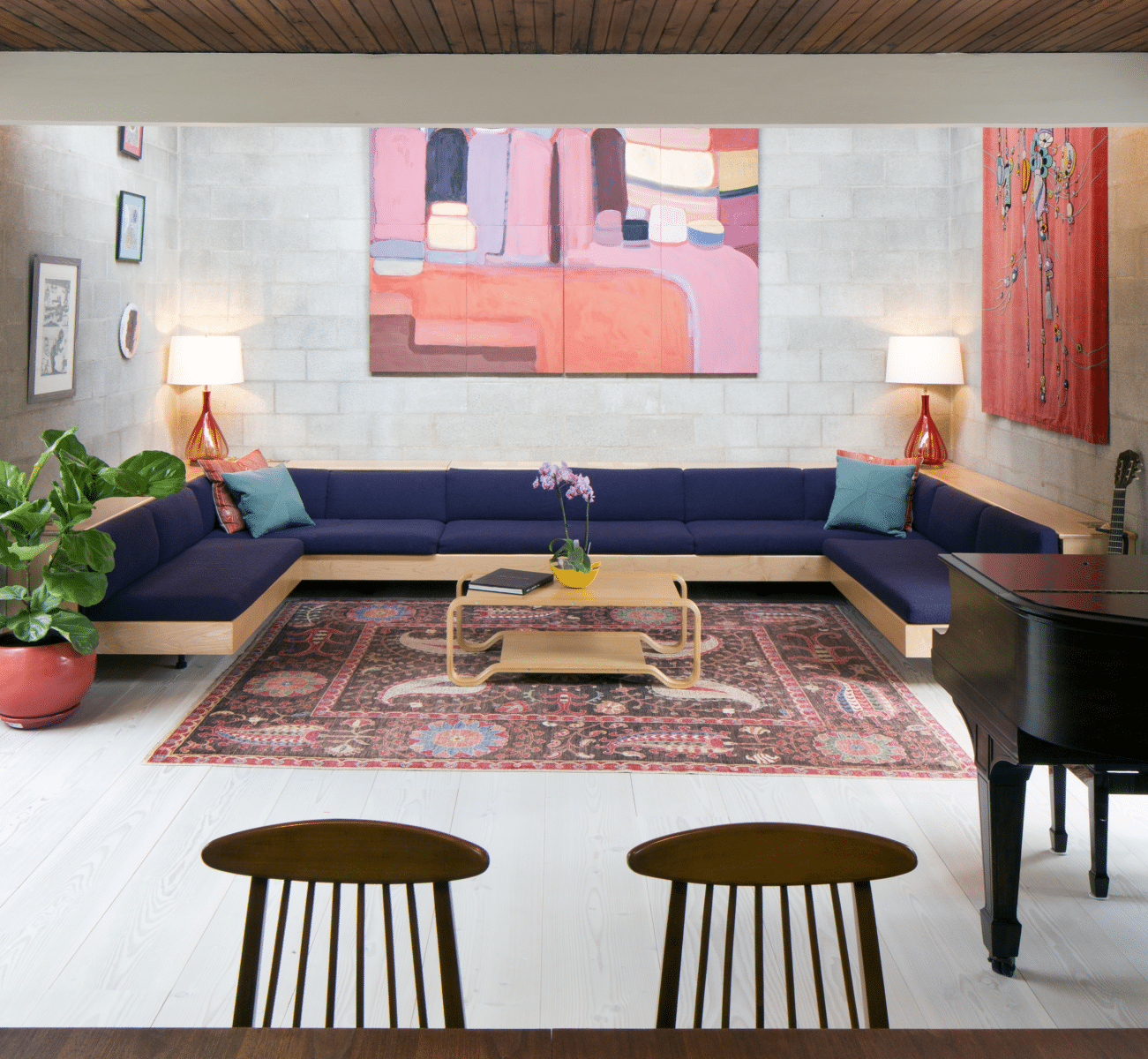 The Chermayeffs sold the building shortly after its completion in 1964. The new owners made some “improvements” over the years. Our design challenge was to achieve the required program, and some major remediations – including some structural loading reconfiguration to resolve insufficiencies dating from the original design – and produce a result that looked as though Chermayeff, chastened by present realities, had returned. The decision to retain the basic form precluded addition, so a careful rearrangement of the interior space, particularly the bedroom wings, was undertaken. The new requirements for an en-suite bathroom and a small home office space forced the reconfiguration, and although every original partition was removed, the final rearrangement bears a strong resemblance to the original layout.