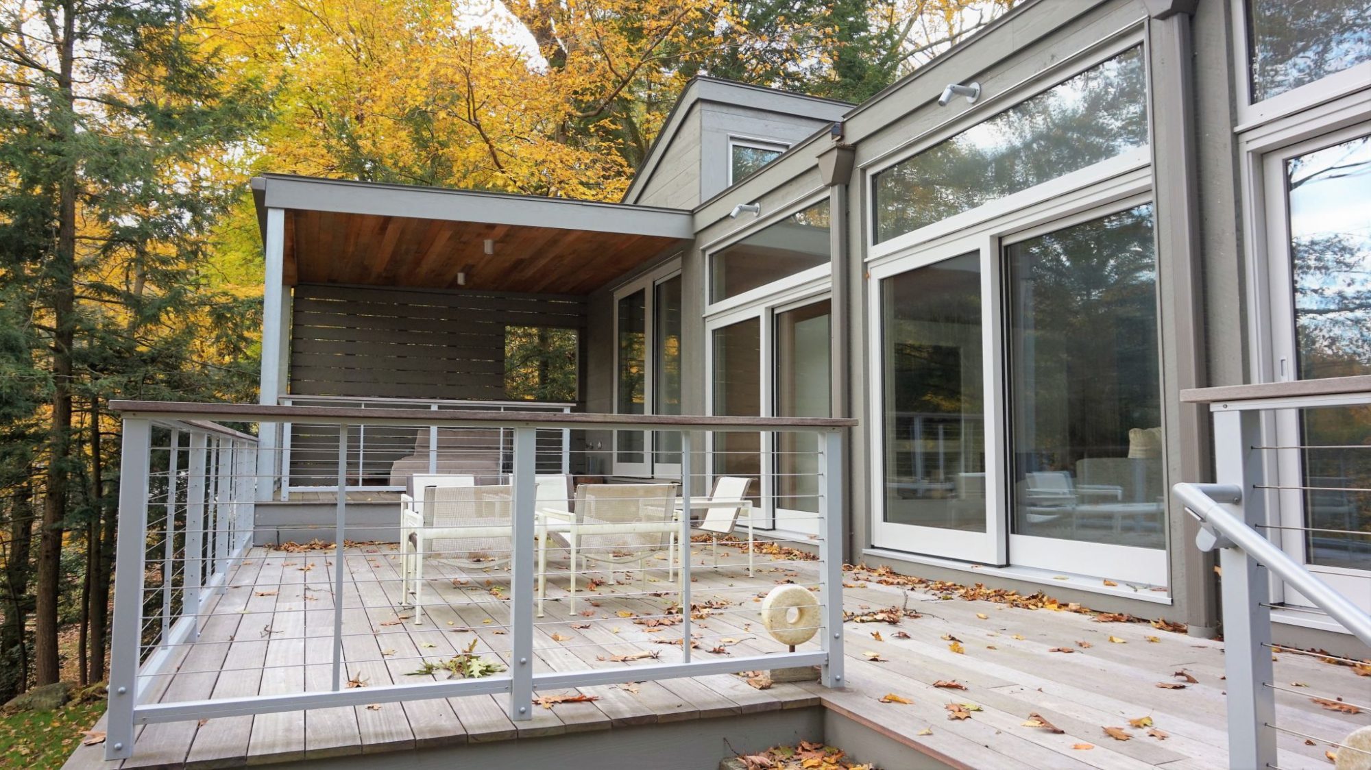 This new lake-front three bedroom, two full and one half-bath home plus studio replaces a tear-down where the client wanted to modernize and improve layout and energy efficiency. BPC was selected to work with the client’s architect to incorporate an improved thermal envelope and mechanical system, while working within the home’s existing foundation. The design features a unique rustic modern design and layout capitalizing on expansive lake front views.