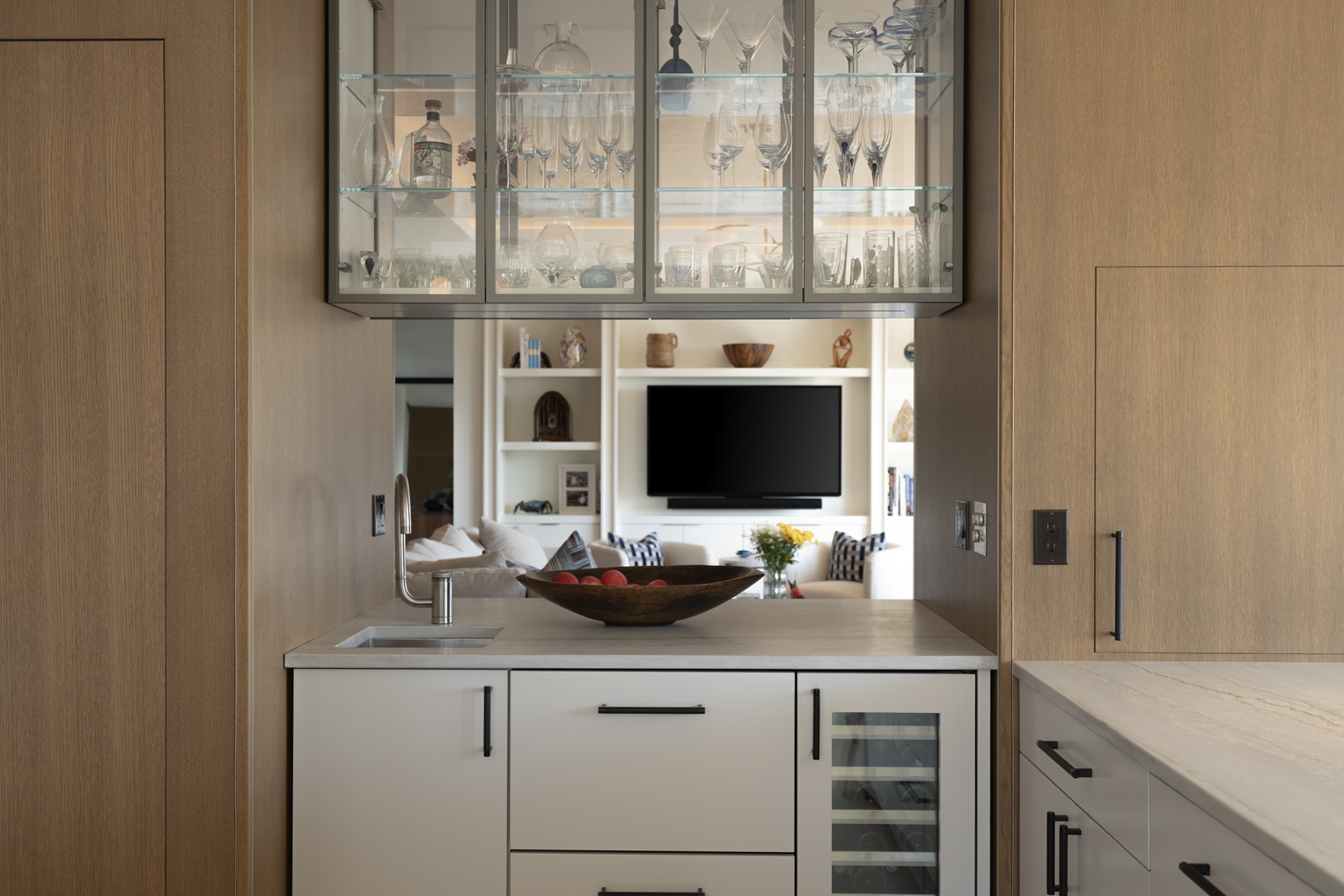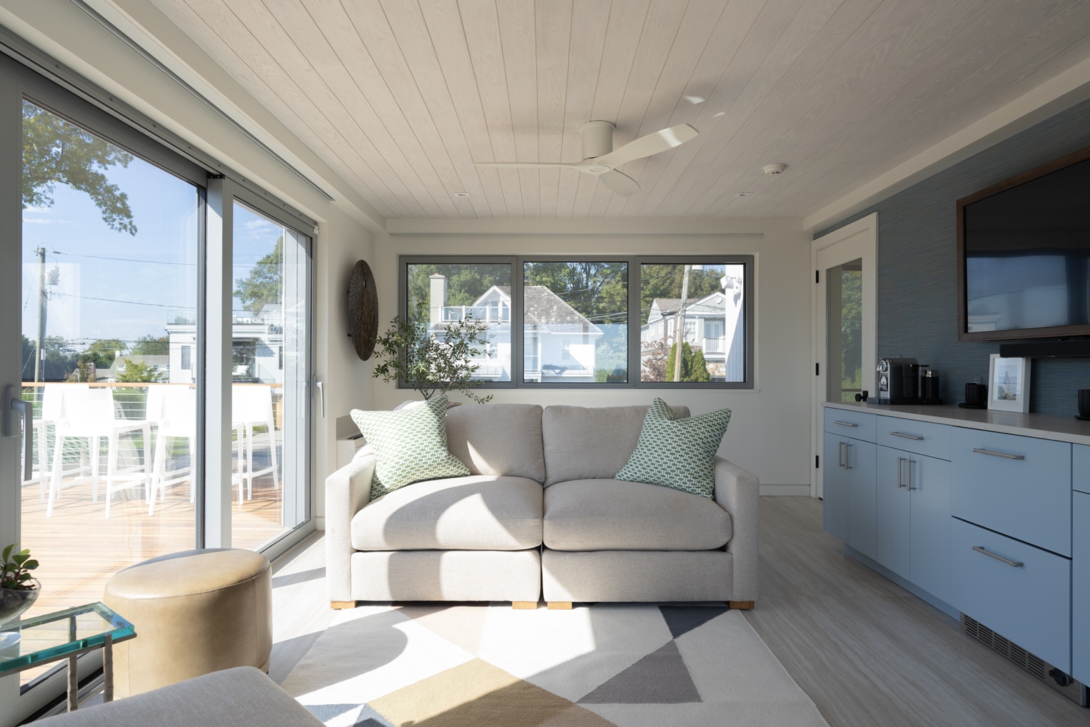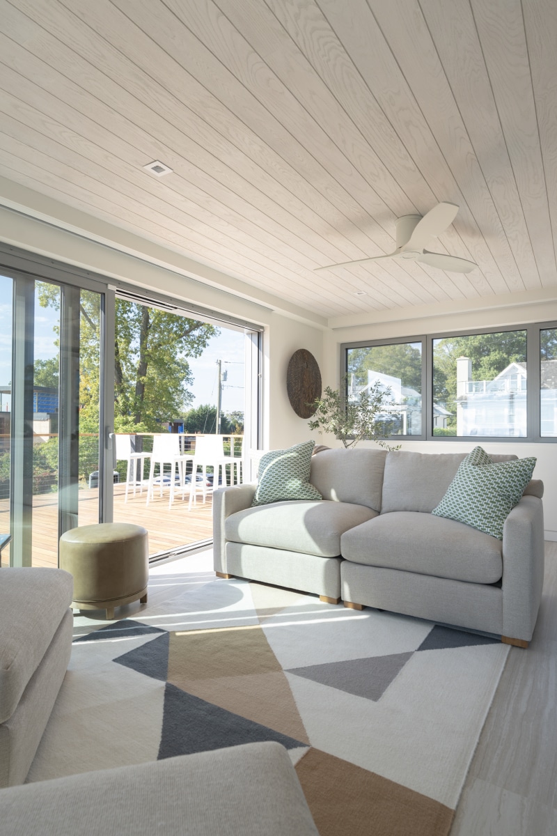 Sound View House is comfortably located within a shoreline community. Due to its hillside location, the occupants enjoy a panoramic view of Long Island Sound. Clean and understated finishes contribute to the subtle elegance of this family home.