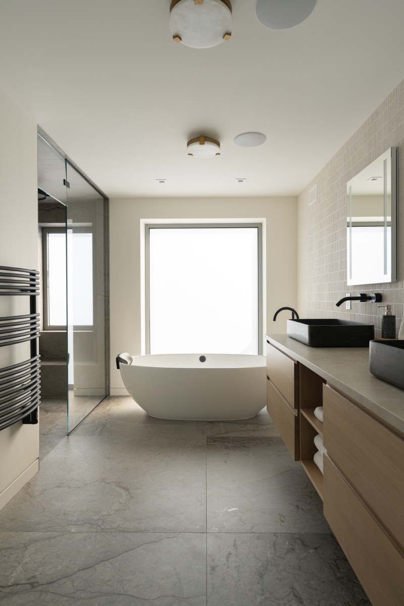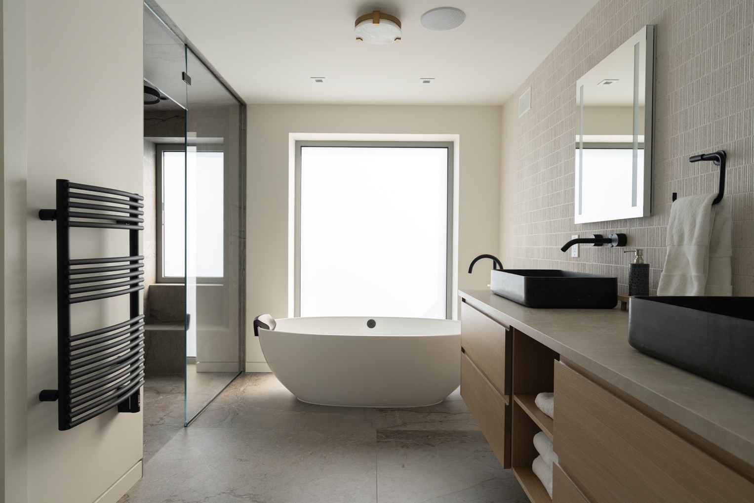 • Primary bathroom features steam shower and windows that transition from clear to frosted at the push of a button.