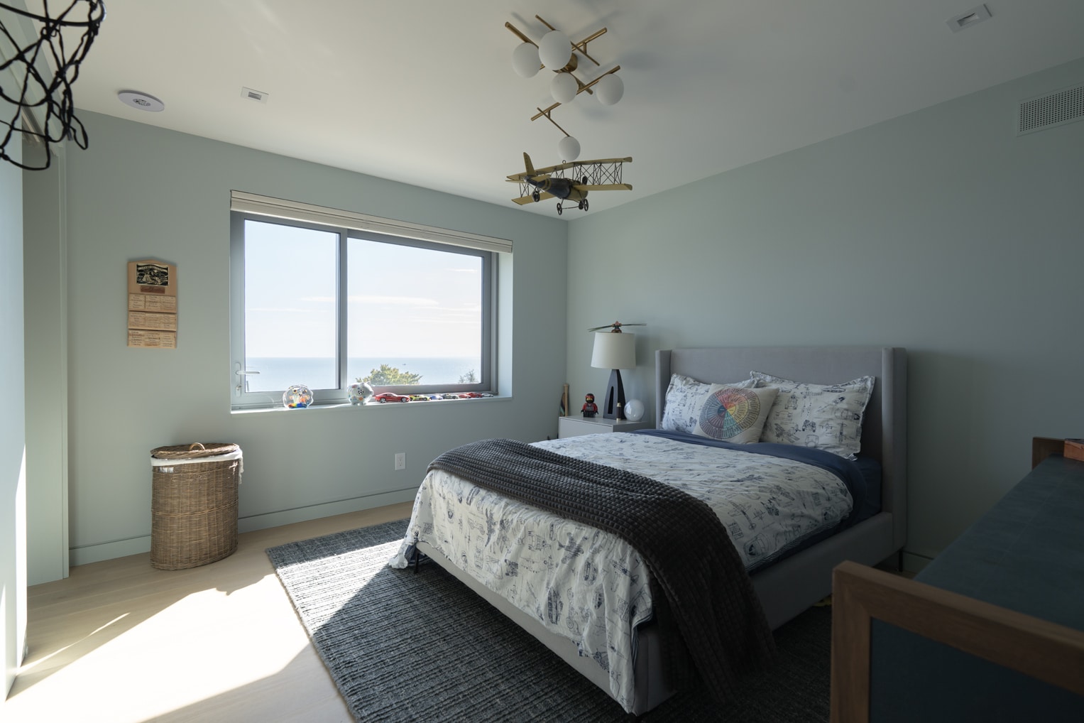 • Motorized interior shades with shade pockets that are integrated into the walls.
